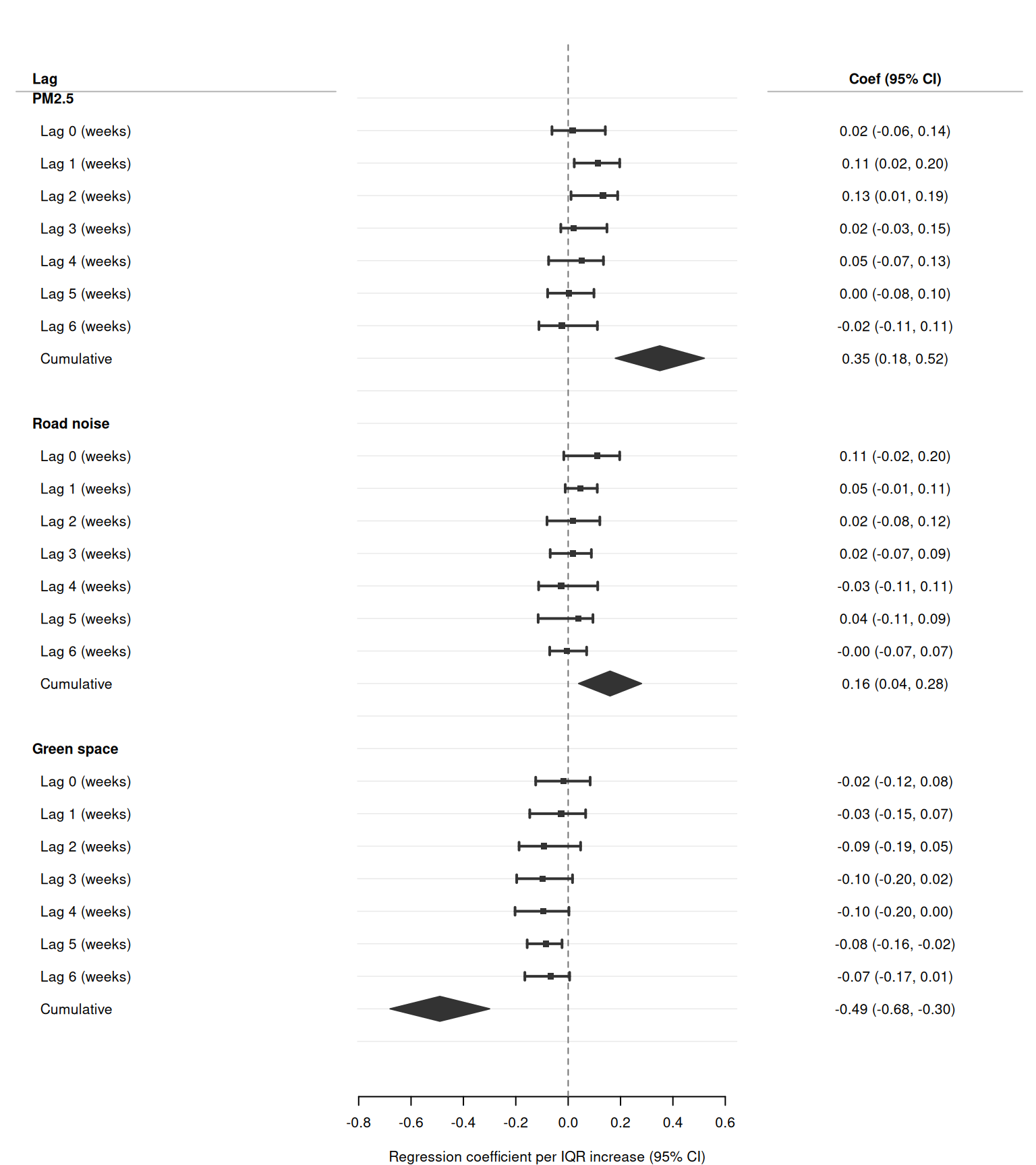 data.frame(exposure = "Road noise", lag = "Cumulative", estimate = 0.16,